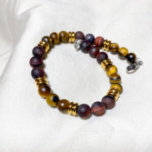 Bracciale Occhio di Tigre Rosso e Giallo – pietra naturale e acciaio