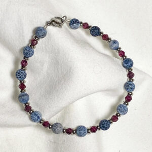 Bracciale in acciaio e pietre naturali di Agata Blu e Granato