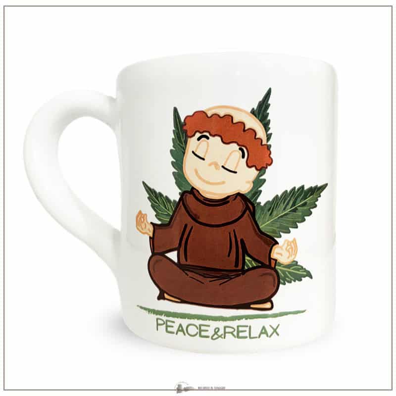 Questo oggetto in maiolica è un prodotto artigianale realizzato a Deruta, città dall’antica tradizione ceramica. La Mug in ceramica mod. Relax è perfetta per sorseggiare caffè o tisane grazie allo spessore della tazza che mantiene le bevande calde. Prodotto di alta qualità. La Mug fa parte della collezione Gimo by Cannabizzando.